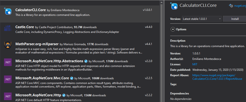 I will be using the solution from my last tutorial, which has a .NET Core library class called CalculatorCLI.Core