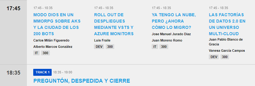 17:45 – Las factorías de datos 2.0 en un universo multi-cloud con Juan Pablo Blanco y Vanesa García Campos. [DEV 300]
