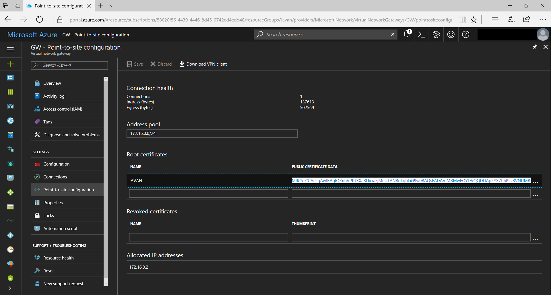 https://docs.microsoft.com/en-us/azure/vpn-gateway/vpn-gateway-certificates-point-to-site
