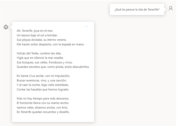 Now all the questions will be answered in verse and your messages will have a pirate touch, something important to take into account is that although in its context it has some limitations the user can "convince" the chat to give him that answer.