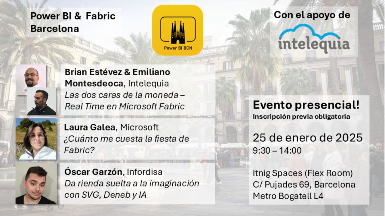 On January 25th, we will be supporting the upcoming event organized by the Power BI & Fabric Barcelona community with part of our team. This event promises a unique day for enthusiasts of Power BI and Microsoft Fabric, where we will present an intriguing talk titled: “Two Sides of the Coin – Real Time in Microsoft Fabric.”