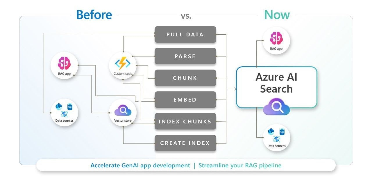 Para automatizar y agilizar estos procesos, Microsoft ha anunciado la disponibilidad general de la vectorización integrada en Azure AI Search. La vectorización integrada permite la indexación automática de vectores y la consulta utilizando modelos de incrustación integrados, lo que ayuda a las aplicaciones a aprovechar al máximo el potencial de los datos.