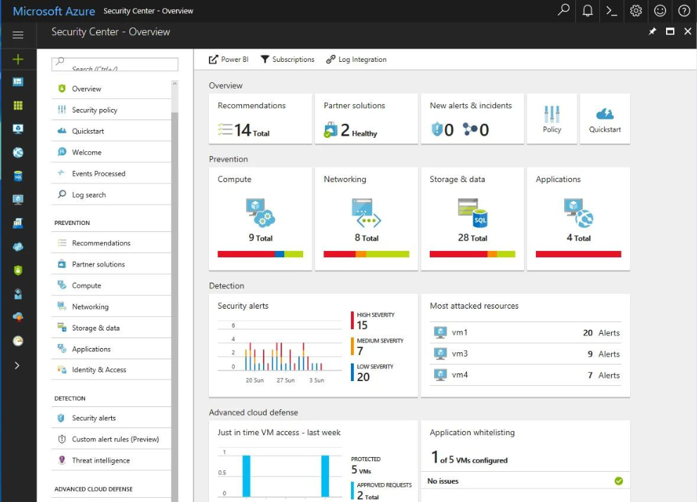 - Prevención de amenazas: Azure Security Center ofrece una solución de seguridad unificada que permite a las organizaciones identificar y protegerse contra amenazas y vulnerabilidades en tiempo real. Con capacidades de análisis de seguridad avanzadas y detección de amenazas basada en inteligencia artificial, Security Center ayuda a prevenir, detectar y responder a incidentes de seguridad de manera proactiva.
