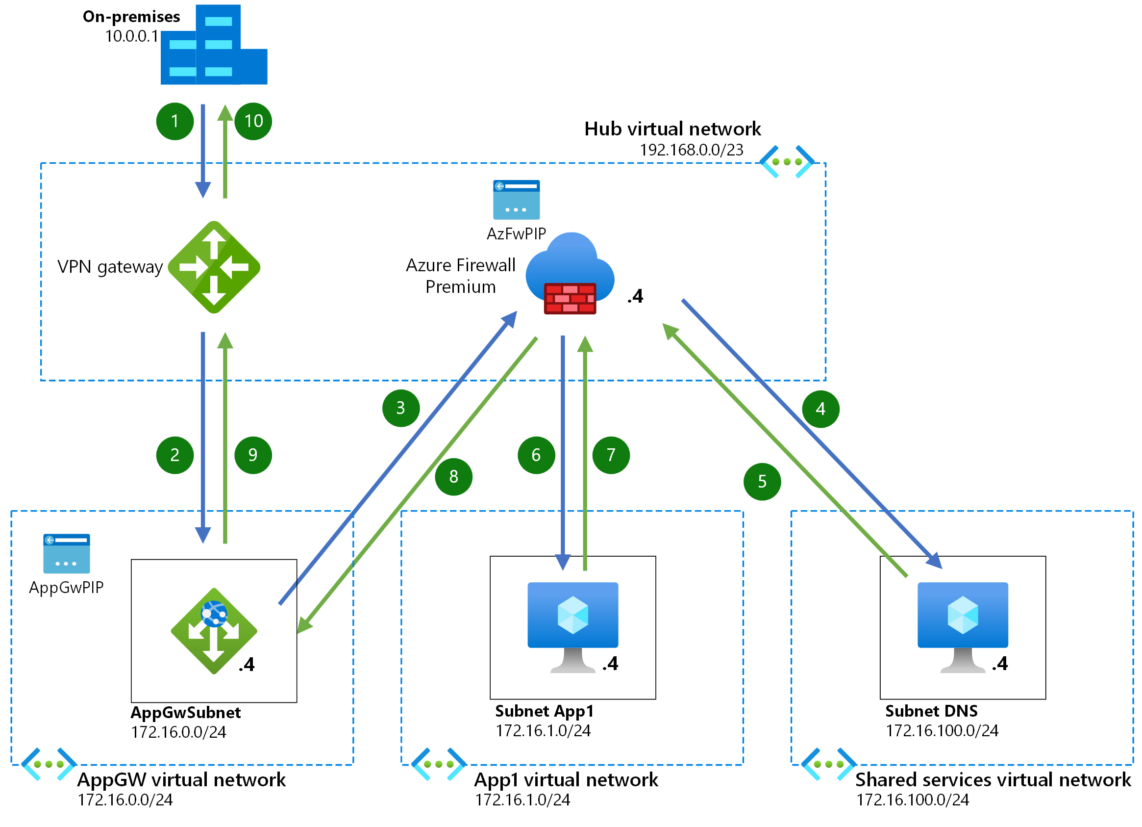 Red de confianza cero para aplicaciones web con Azure Firewall y Application Gateway