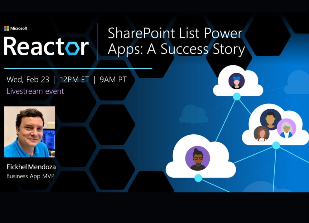 Pues entonces no puedes perder de vista esta ponencia “SharePoint List Power Apps: Success Story” el próximo 23 de febrero en la que nuestro compañero, Team Lead, y MVP de Microsoft Business Applications Eickhel Mendoza, presentará de manera online para toda la comunidad de Microsoft Reactor Toronto.