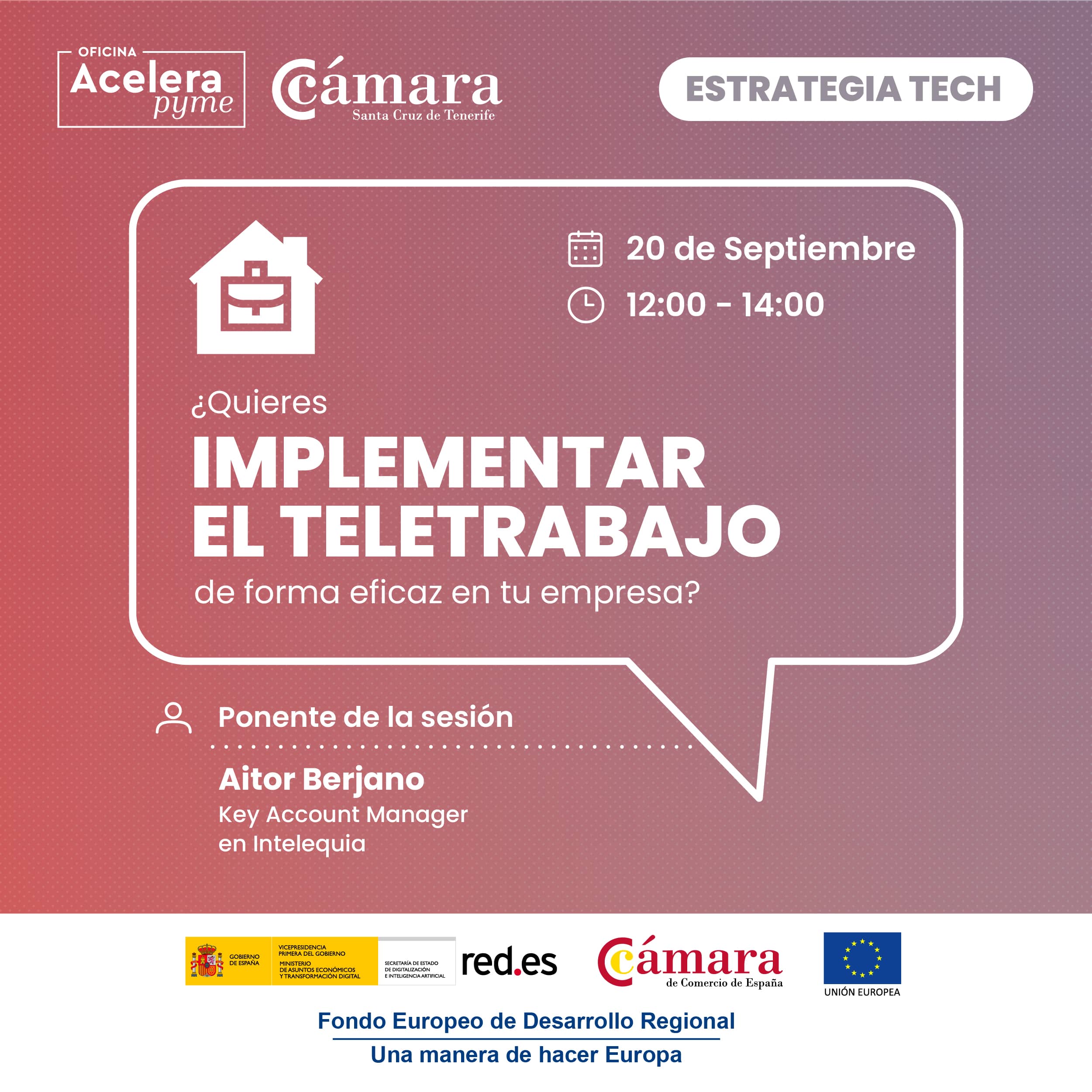 Esta actividad está incluida bajo la iniciativa AceleraPyme desarrollada y puesta en marcha en toda España por Red.es para ofrecer asesoramiento gratuito y personalizado en Transformación Digital para pequeñas y medianas empresas, micropymes, autónomos y emprendedores.